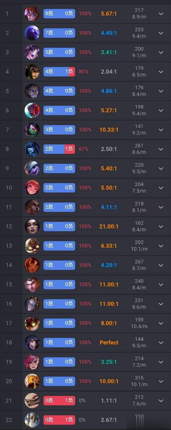 这个账号在短短 56 局里,使用了多达 22 位不同枭雄,险些不存在“绝活枭雄”的说法,什么位置、什么类型皆能拿出来打,而胜率高达93% 。