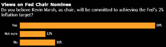 近三分之一受访经济学家也对凯文·沃什示意出疑虑。好意思国总统唐纳德·特朗普提名这位前好意思联储理事接替杰罗姆·鲍威尔担任好意思联储主席。当被问及是否信托沃什会悉力于于好意思满好意思联储2%的通胀标的时,13%的受访者示意不信托,18%明确示意“不信托”。