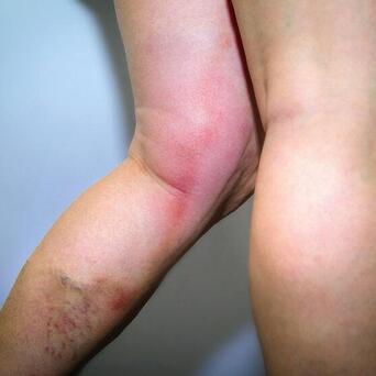 腿部或手臂名义发红,血管里面的局部堵塞会激励周围组织的无菌性炎症反映。顺着静脉血管的走向,会发现局部皮肤表情逐渐变得暗红以致紫红,用手掌触摸还能嗅觉到赫然的荒谬发烧。