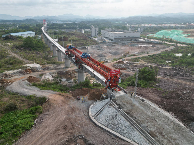 4月13日上昼,跟着架梁功课东谈主员将1片32米T梁稳稳架设在湘水特大桥桥墩上,象征着瑞梅铁路全线重难点遏抑性工程——湘水特大桥完成T梁架设,为下一步铺轨施工提供条款。